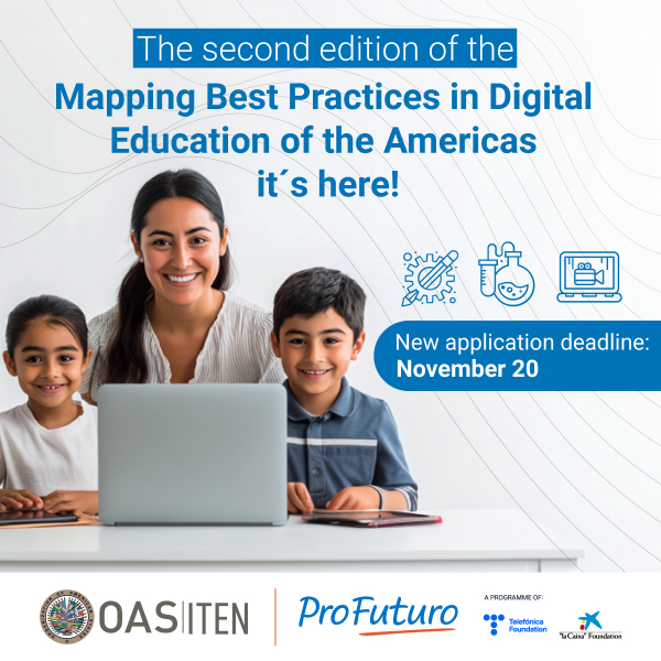 From the OAS Alliance and ProFuturo Foundation we are looking for you! Join our project and be part of the second edition of our mapping, with the most innovative practices that have been carried out in the Americas between 2022, 2023 and 2024.