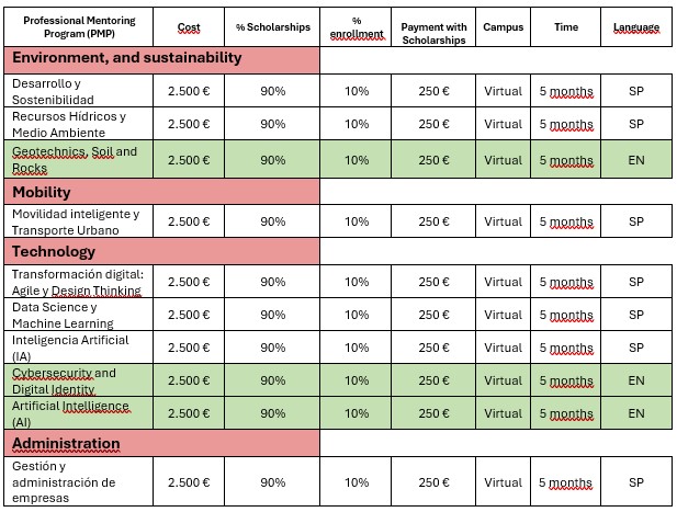 - The scholarship recipients will be responsible for covering 10% of the total cost of the program not covered by Structuralia, which for this call corresponds to an amount of 250€.