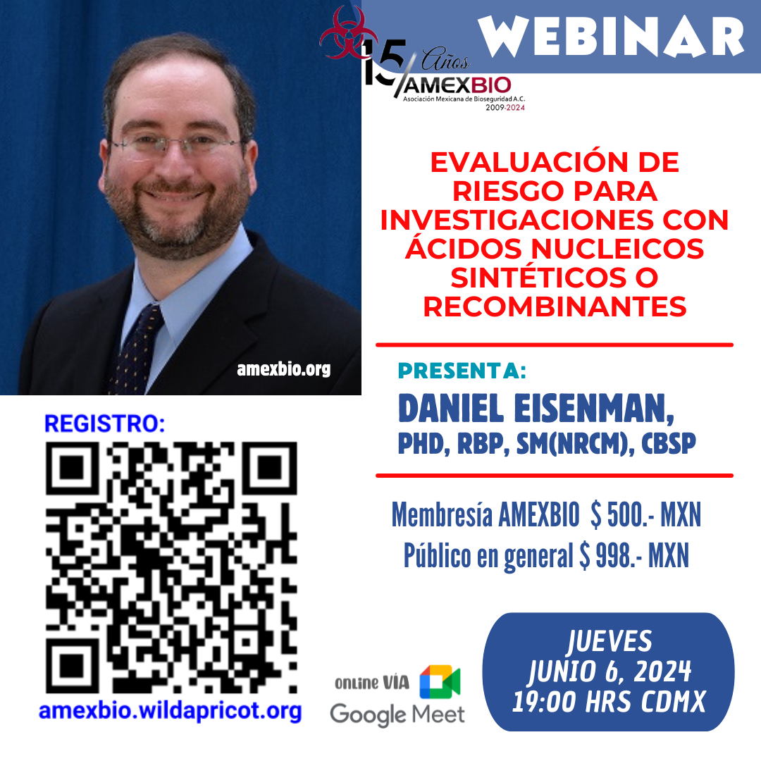 AMEXBIO organiza este webinar, dictado por el Dr. Daniel Eisenman. Para más detalles, por favor escanee el código QR.