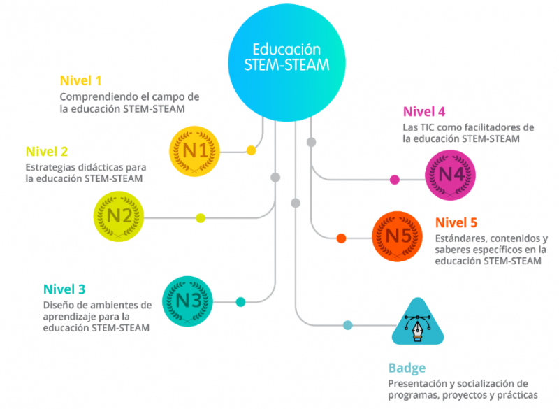 La Diplomatura en Educación STEM – STEAM es un programa de capacitación para el desarrollo profesional de docentes y agentes educativos, certificado por la Organización de los Estados Americanos y la Universidad Pontifica Bolivariana (universidad colombiana con acreditación de alta calidad).