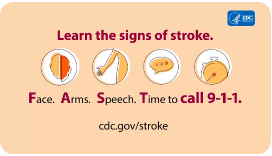 F.A.S.T.: Face. Arms. Speech. Time to call 9-1-1. This simple reminder can help recognize the signs and symptoms of a stroke and possibly save a life.