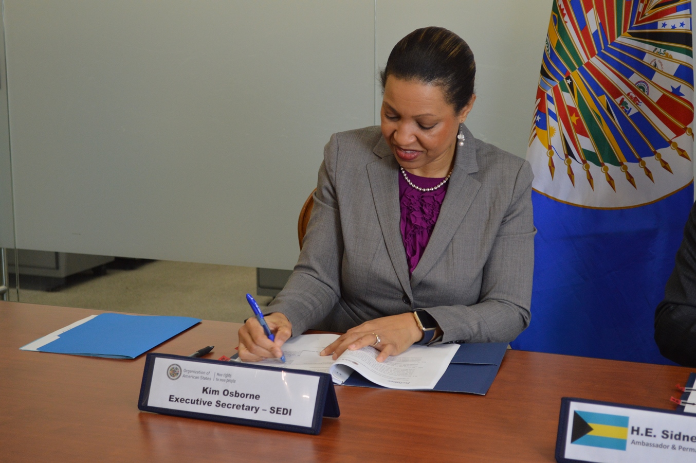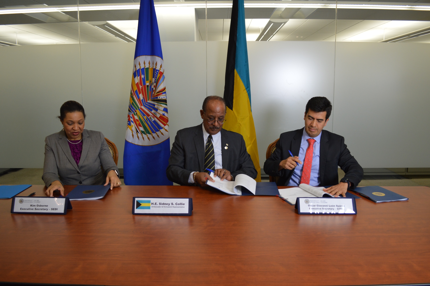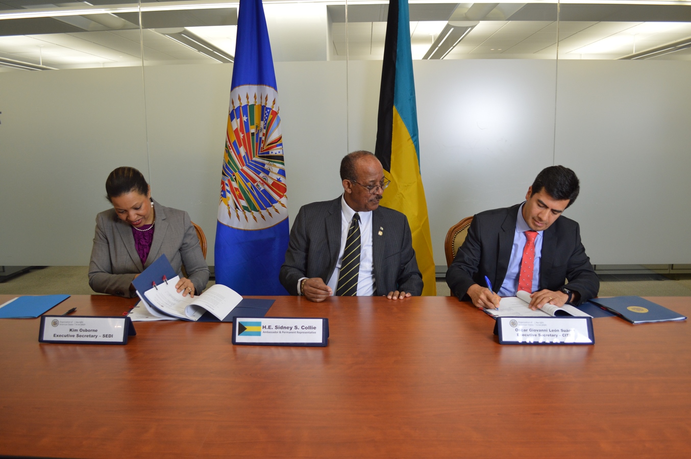 The signing act was attended by the Ambassador and Permanent Representative of Bahamas before the OAS, S.E. Sidnet S. Collie; the OAS Executive Secretary for Intergral Development, Kim Osborne and the Executive Secretary of the Inter-American Telecommunications Commission (CITEL), Óscar León.