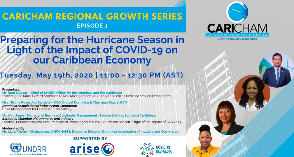The Caribbean Chamber of Commerce, with the support of UNDRR, Arise and COVID-19 Response, are organizing this webinar on peparing for the hurricane season in light of the impact of COVID-19 ont eh Caribbean Economy.